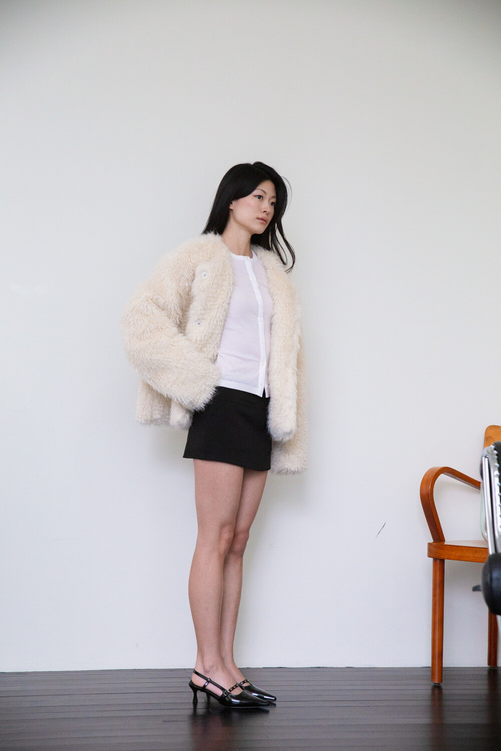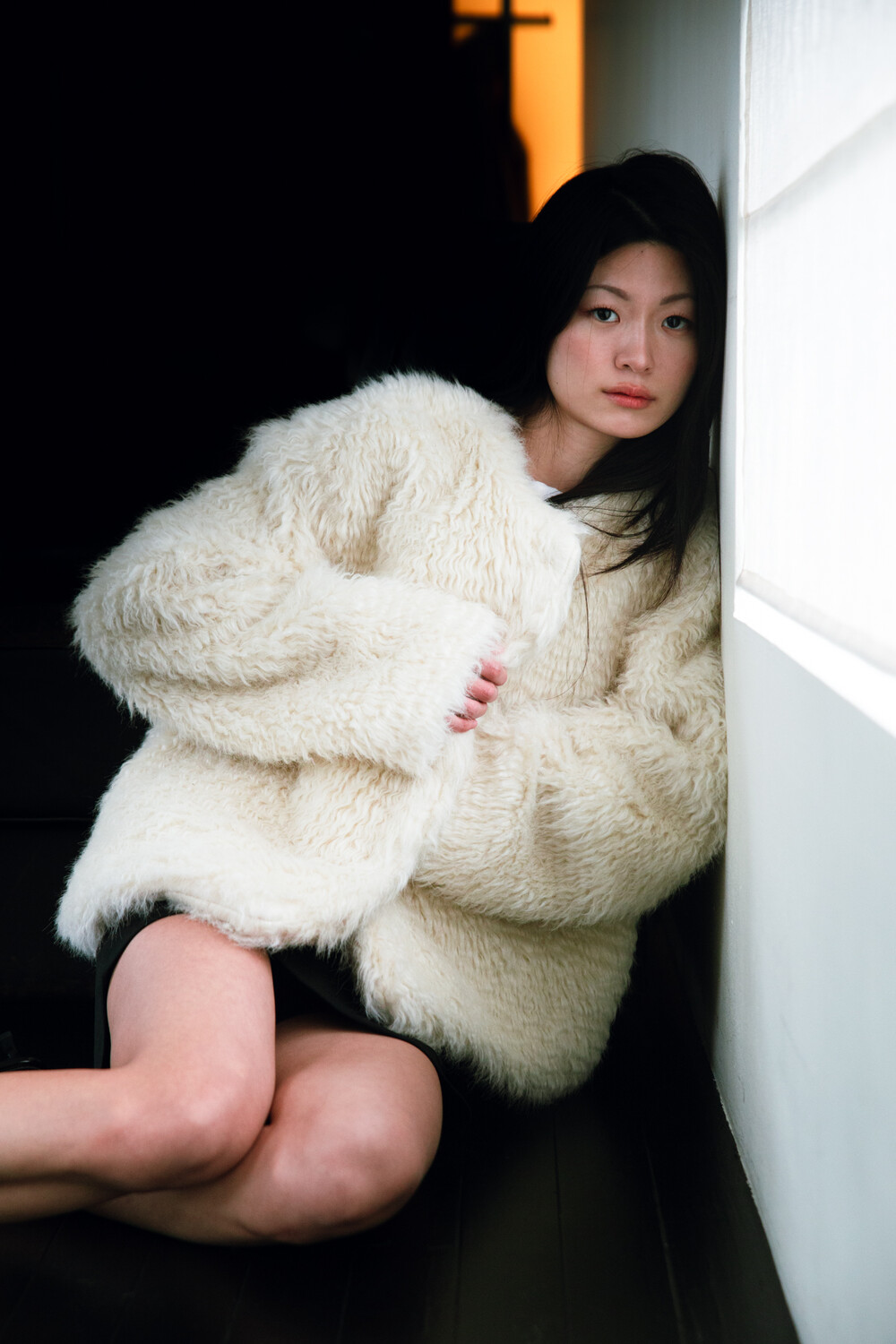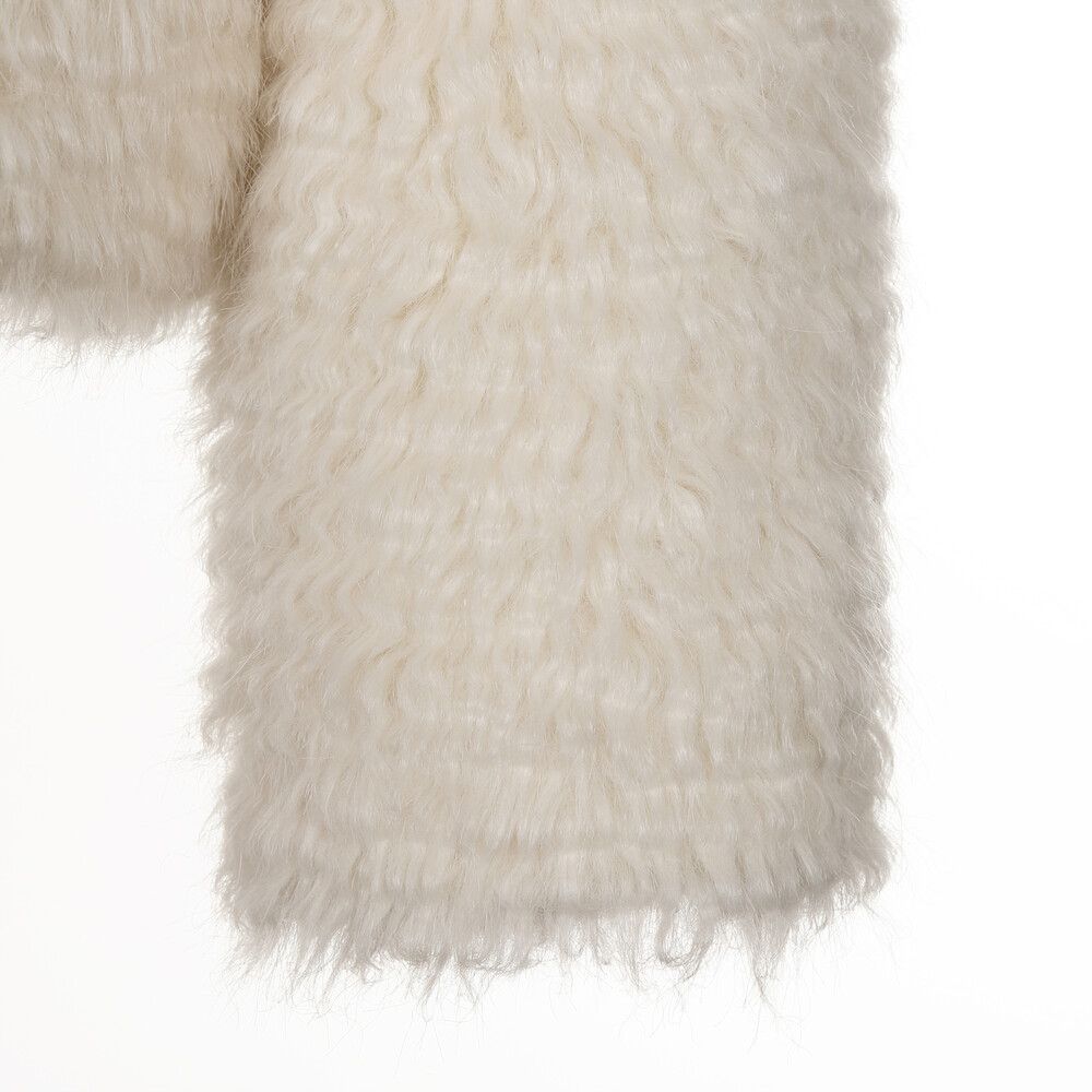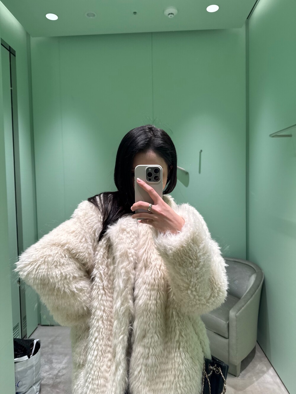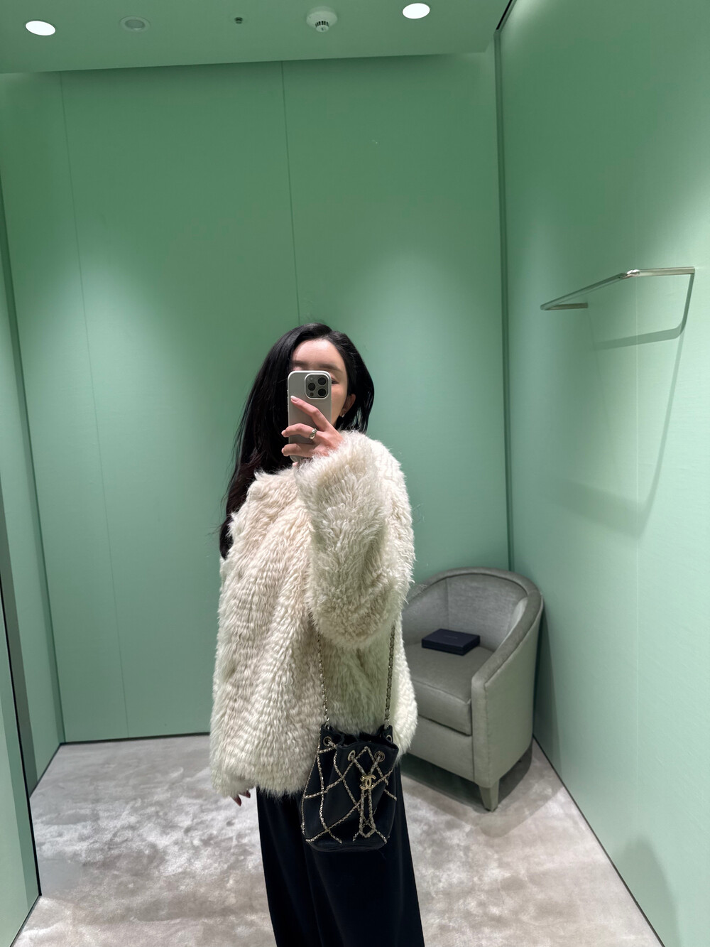 The overall balance has been carefully adjusted to ensure a natural drape without bulk, even with fur texture.Generous fit through the shoulders, chest, and armholes allows easy layering with winter knits.