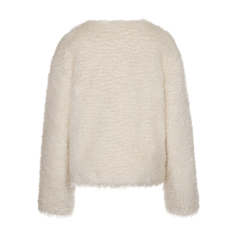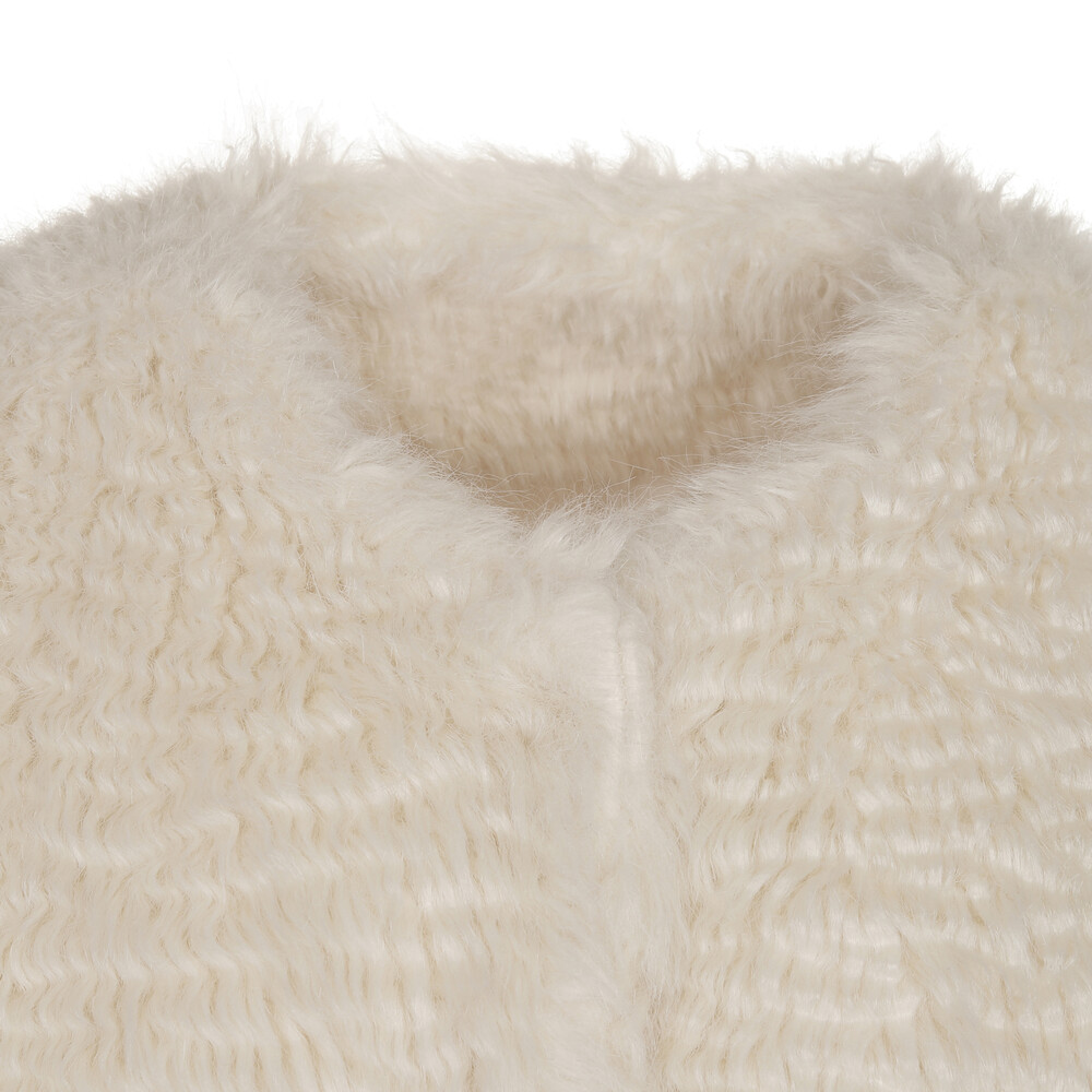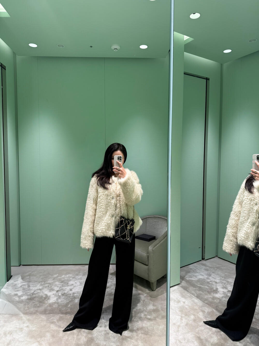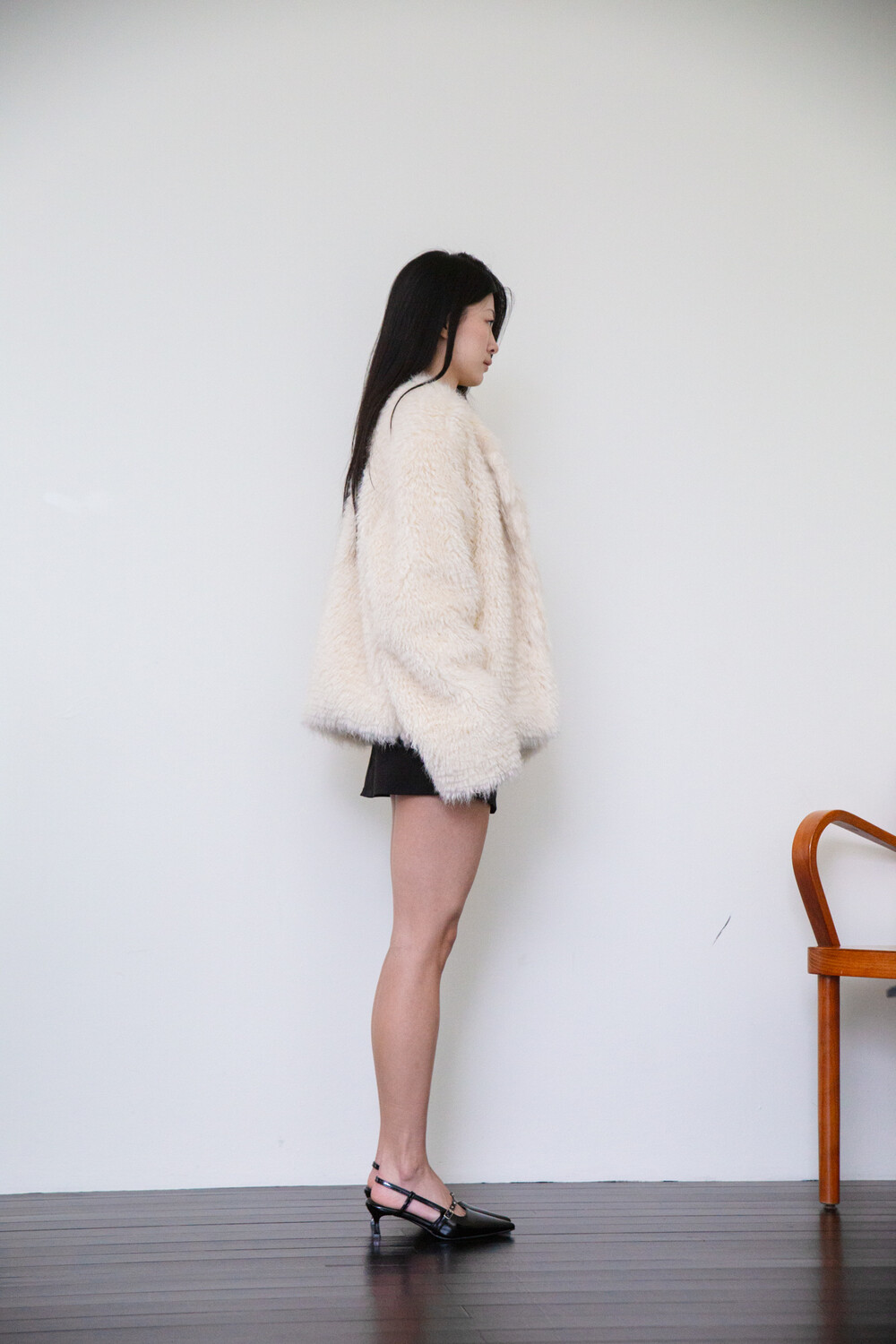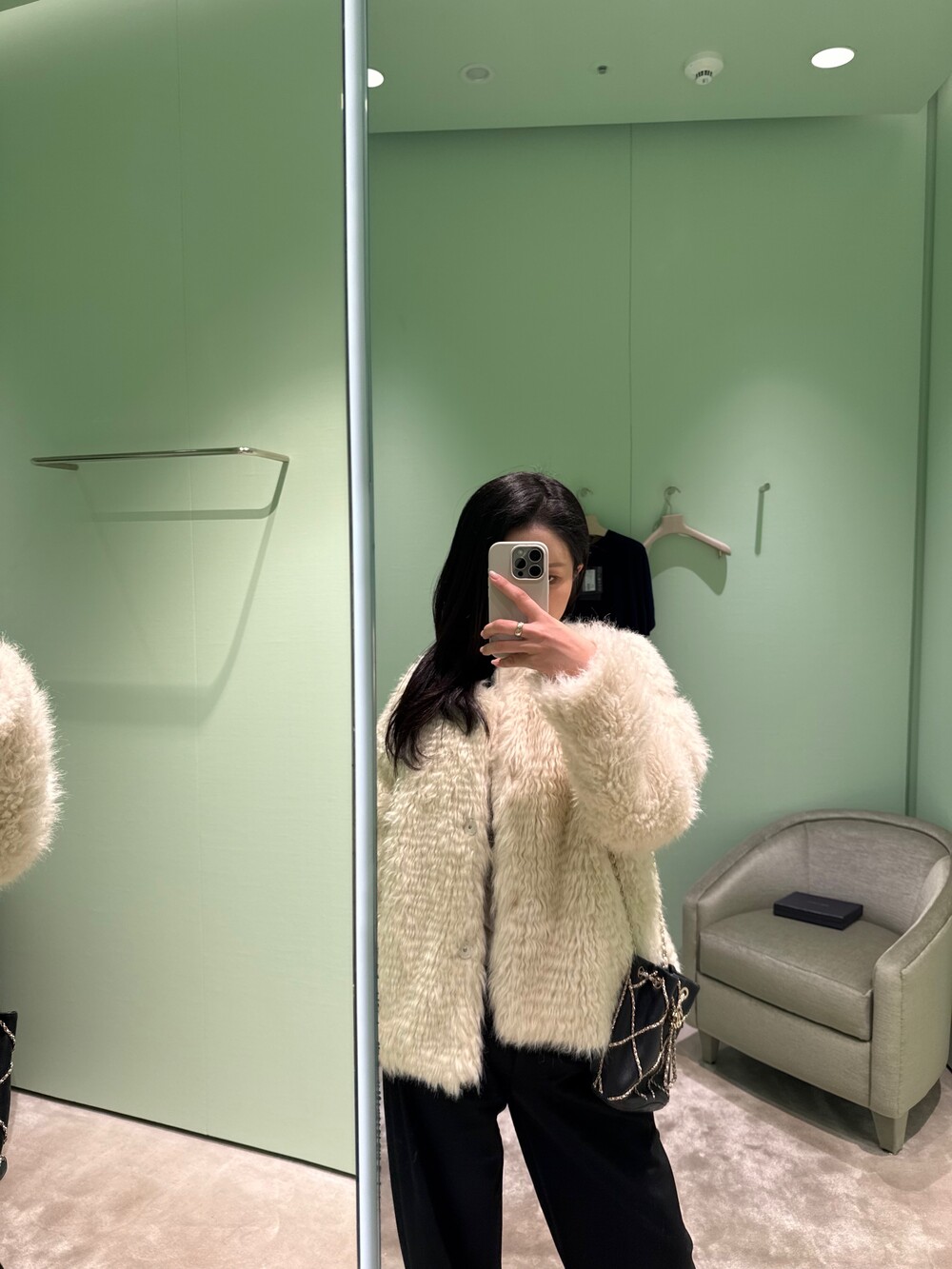 The overall balance has been carefully adjusted to ensure a natural drape without bulk, even with fur texture.Generous fit through the shoulders, chest, and armholes allows easy layering with winter knits.