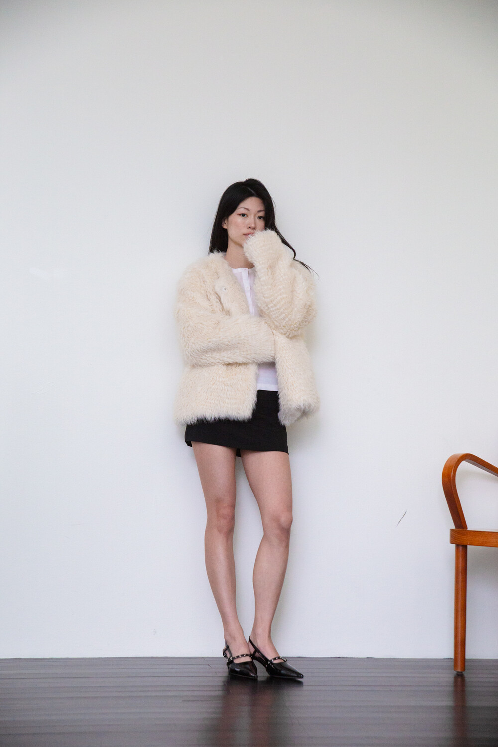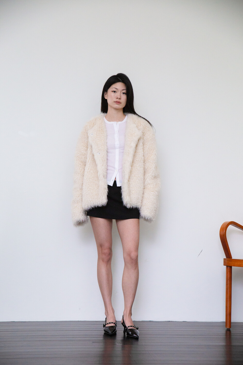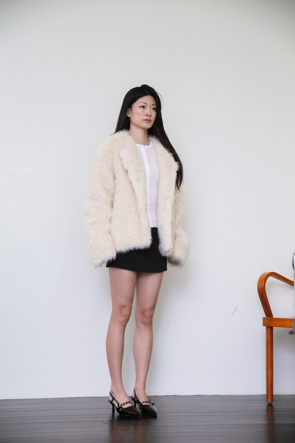 A premium wool-blend fox faux fur jacket from TARE’s FW collection,